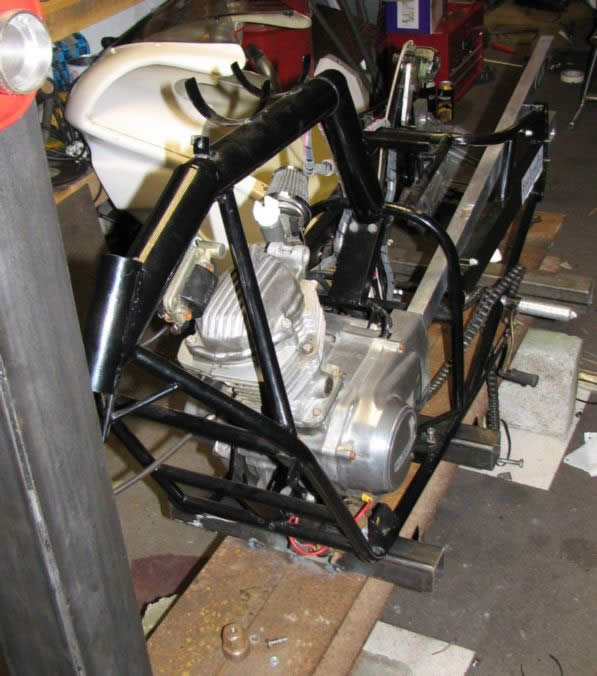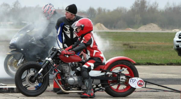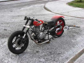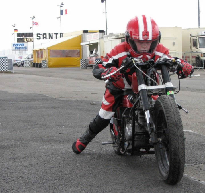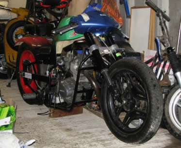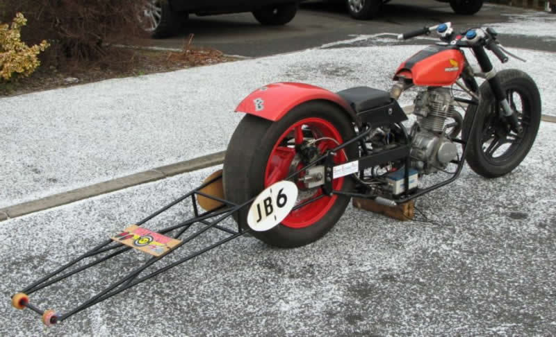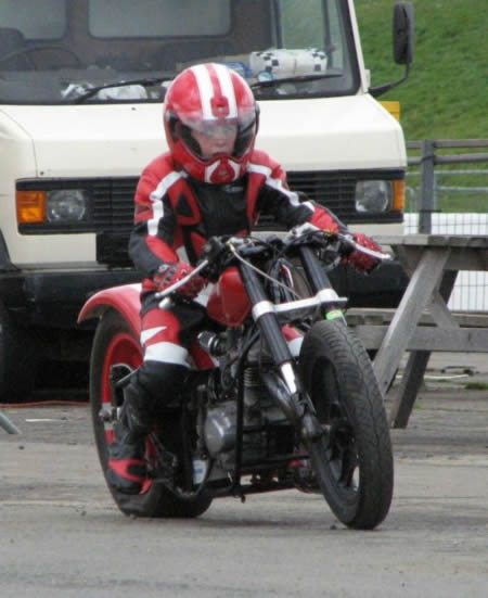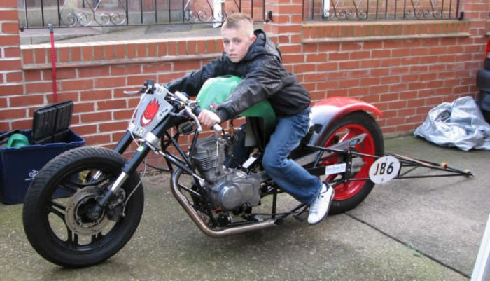 'Lil Loon' as Jamie has suggested we call his bike was thought to be a bit of a stretch for him, so after contacting Jerry Collier (World Record Holder for Drag Bike Racing) we loaded "Lil Loon" into the van and was off to the workshop of Jade Racing for modification to enable him to be more comfortable on it.